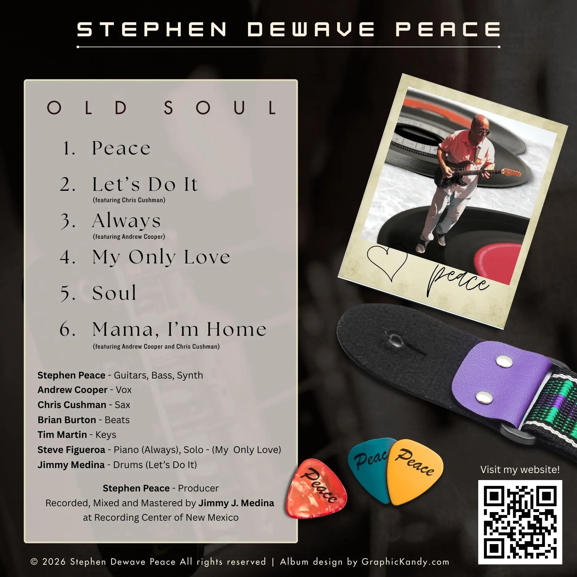For the much anticipated first album release of Stephen Dewave Peace comes Old Soul. Released in 2026. Design by Mark Bratton for GraphicKandy.